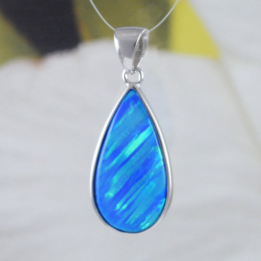 Hawaiian Blue Opal Rain Drop Pendant, Sterling Silver Blue Opal Rain-Drop Pendant, N8388 Birthday Mom Mother Gift