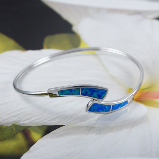 Hawaiian Blue Opal Ocean Wave Bangle Bracelet, Sterling Silver Blue Opal Wave Bracelet B3346 Birthday Mom Gift, Statement PC
