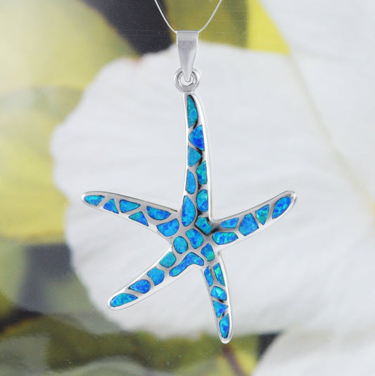 X-Large Hawaiian Blue Opal Starfish Pendant, Sterling Silver Blue Opal Star Fish Pendant, N8376 Birthday Mom Gift, Statement PC