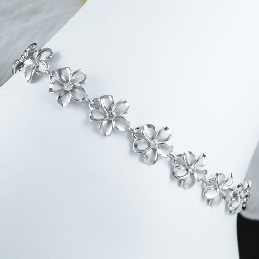 Hawaiian Plumeria Bracelet, Sterling Silver Plumeria CZ Bracelet, B3334 Birthday Anniversary Mom Mother Gift, Island Jewelry