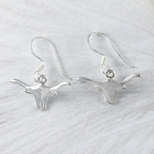 Texan Longhorn Earring, Sterling Silver Longhorn Dangle Earring, E8497 Birthday Wife Mom Mother Gift, Texan Jewelry