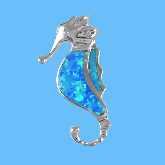 Hawaiian Blue Opal Seahorse Pendant, Sterling Silver Blue Opal Seahorse Pendant N6162 Birthday Mother Mom Gift, Island Jewelry