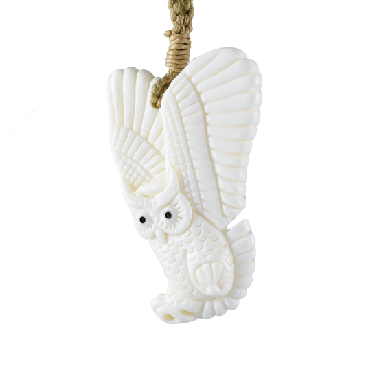 Hawaiian Owl Necklace, Hand Carved Buffalo Bone Owl Necklace, N9128 -Paradise Treasures Jewelry
