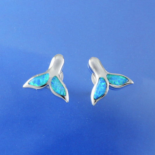 Hawaiian Blue Opal Dolphin Tail Earrings, Sterling Silver Blue Opal Dolphin Tail Stud Earrings, Christmas Birthday Gift