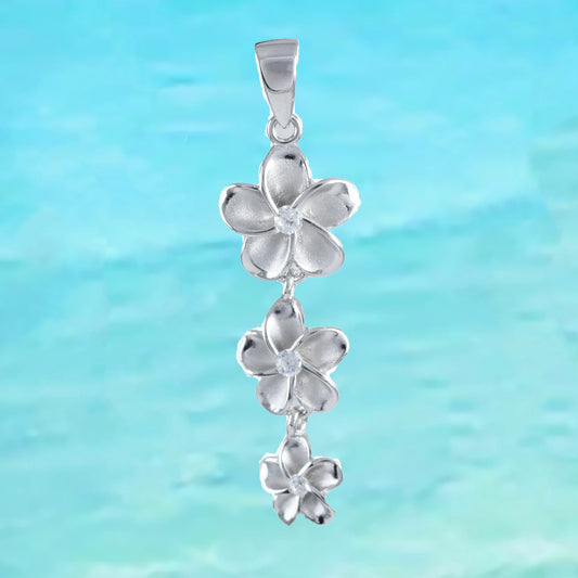 Hawaiian 3 Plumeria Pendant, Sterling Silver 3 Plumeria CZ Pendant, Hawaiian Jewelry, Christmas Anniversary Birthday Gift