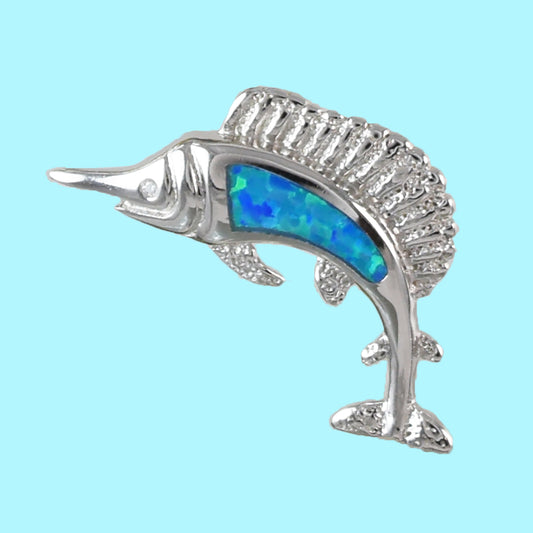 Hawaiian Marlin Pendant, Sterling Silver Blue Opal Inlay Swordfish Marlin Pendant, Hawaiian Jewelry, Christmas Mom Birthday Gift