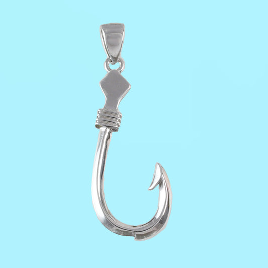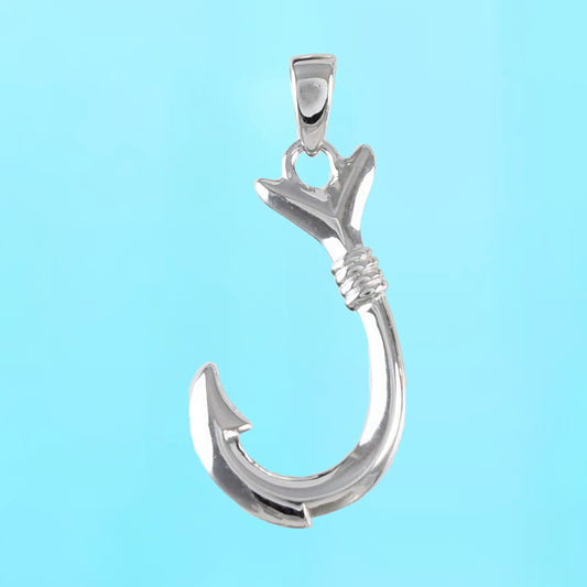 Hawaiian 3D Fish Hook Pendant, Sterling Silver Fish Hook Charm Pendant, Hawaiian Jewelry, Christmas Anniversary Birthday Gift