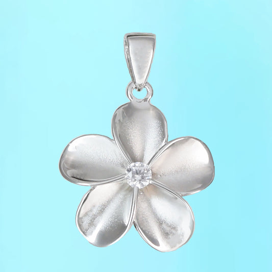 Hawaiian Plumeria Pendant, Sterling Silver Plumeria CZ Charm Pendant, Hawaiian Jewelry, Christmas Anniversary Birthday Mom Gift