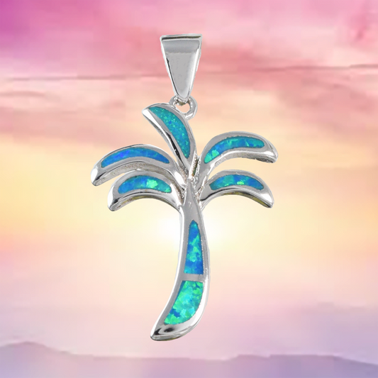 Hawaiian Large Palm Tree Pendant, Sterling Silver Blue Opal Palm Tree Pendant, Hawaiian Jewelry, Christmas Present, Birthday Gift
