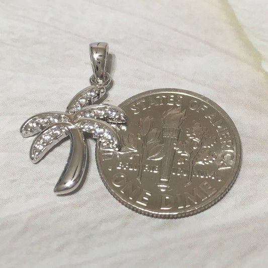Hawaiian Palm Tree Pendant, Sterling Silver Palm Tree CZ Pendant, Hawaiian Jewelry, Christmas Anniversary Birthday Gift
