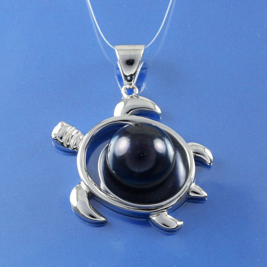Hawaiian Genuine Black Pearl Sea Turtle Pendant, Sterling Silver Black Pearl Sea Turtle Pendant, Christmas Birthday Gift