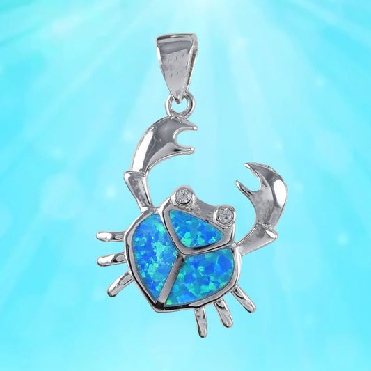 Hawaiian Blue Opal Crab Pendant, Sterling Silver Blue Opal Inlay Crab CZ Eye Pendant, Hawaiian Jewelry, Christmas Mom Birthday Gift