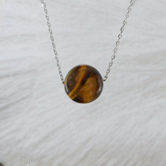Genuine Tiger Eye Round Cut Necklace in Adjustable Sterling Silver Chain, N9519 - Paradise Treasures Jewelry