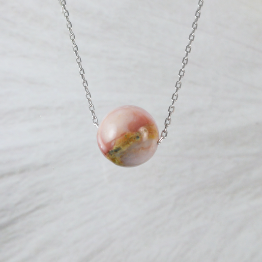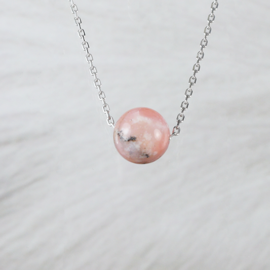 Genuine Pink Opal Round Cut Necklace in Adjustable Sterling Silver Chain, N9526 - Paradise Treasures Jewelry