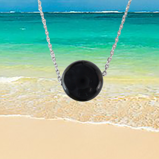Genuine Black Onyx Round Cut Necklace in Adjustable Sterling Silver Chain, N9530 - Paradise Treasures Jewelry