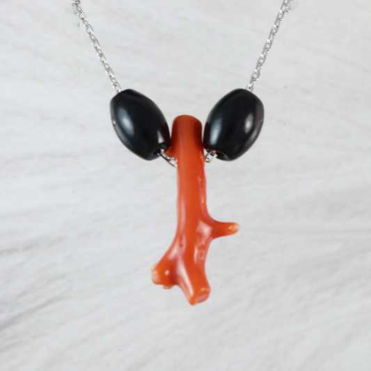 Genuine Black and Red Branch Coral Necklace in Adjustable Sterling Silver Chain, N9504 - Paradise Treasures Jewelry