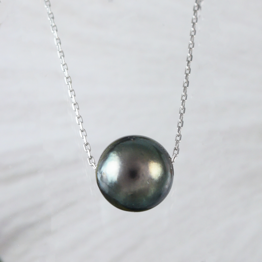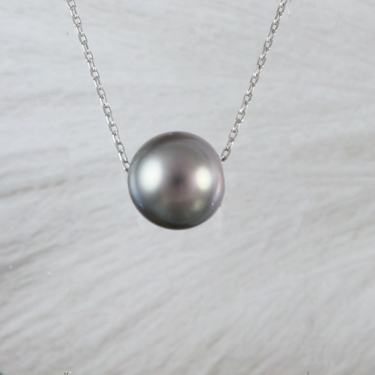 Genuine Tahitian Pearl Necklace in Adjustable Sterling Silver Chain, N9513 - Paradise Treasures Jewelry