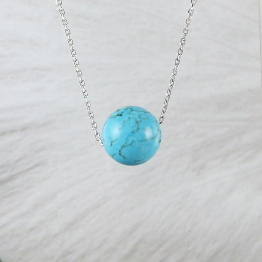 Genuine Turquoise Round Cut Necklace in Adjustable Sterling Silver Chain, N9528 - Paradise Treasures Jewelry