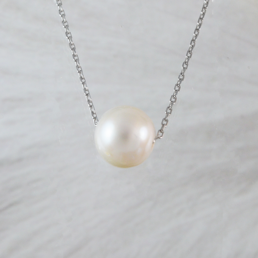 Genuine White Pearl Round Cut Necklace in Adjustable Sterling Silver Chain, N9509 - Paradise Treasures Jewelry