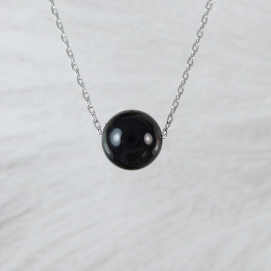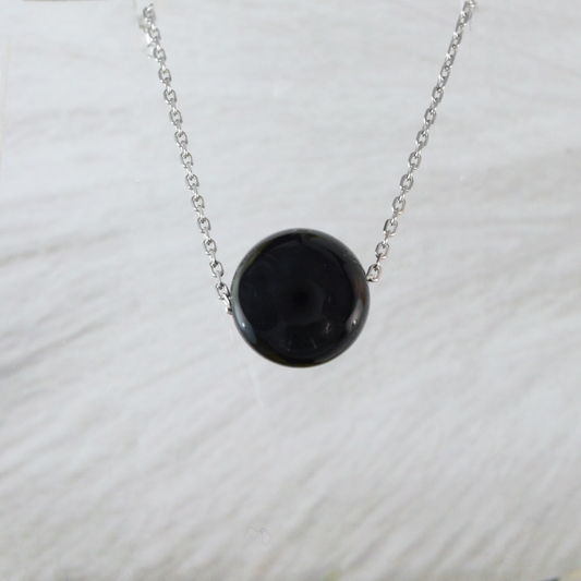 Genuine Black Onyx Round Cut Necklace in Adjustable Sterling Silver Chain, N9529 - Paradise Treasures Jewelry