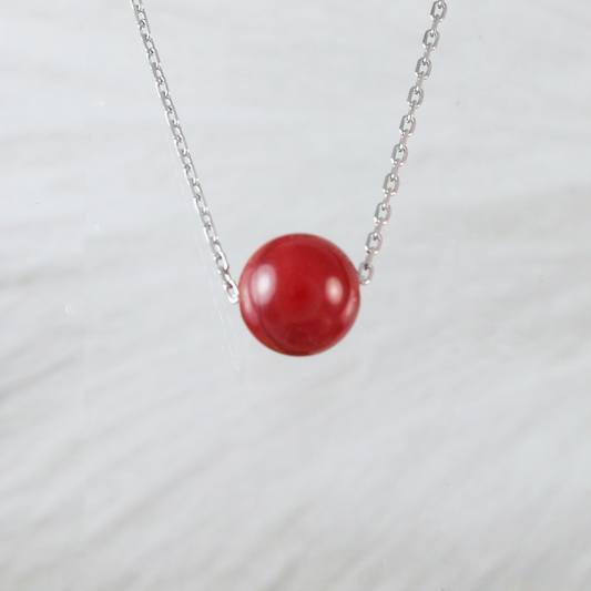 Genuine Red Coral Round Cut Necklace in Adjustable Sterling Silver Chain, N9506 - Paradise Treasures Jewelry