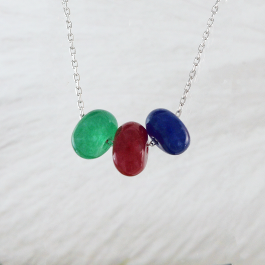 Genuine Emerald Ruby Sapphire Necklace in Adjustable Sterling Silver Chain, N9531 - Paradise Treasures Jewelry