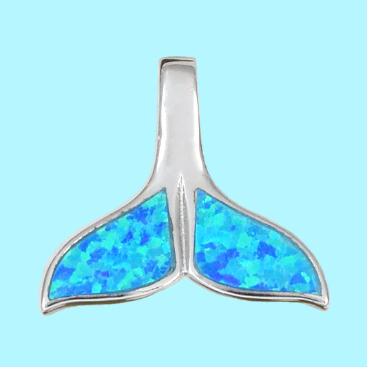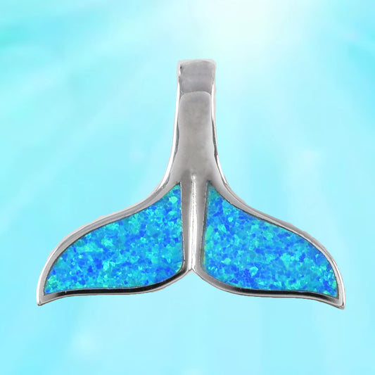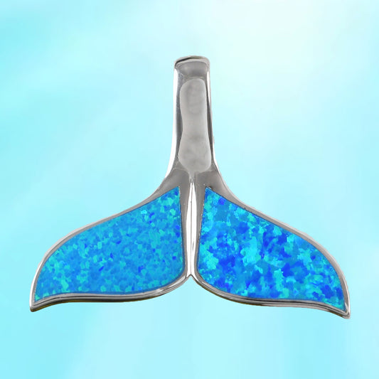 Hawaiian Large Blue Opal Whale Tail Pendant, Sterling Silver Blue Opal Inlay Whale Tail Pendant, Christmas Birthday Mom Gift