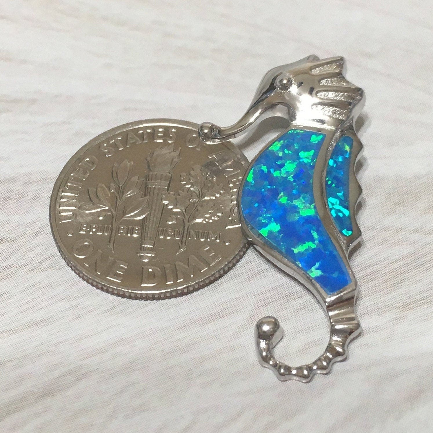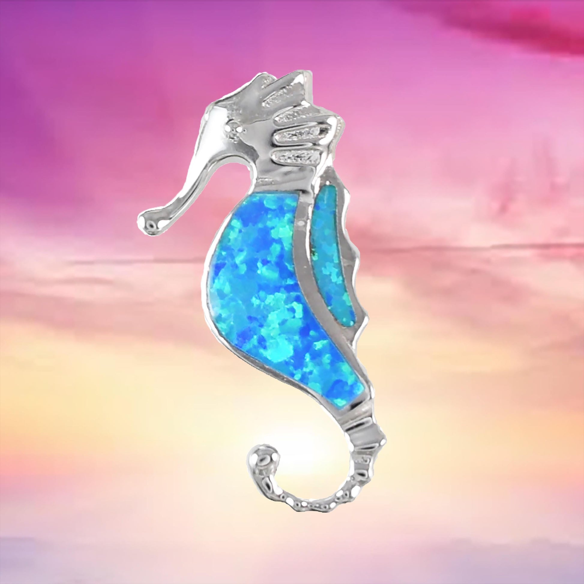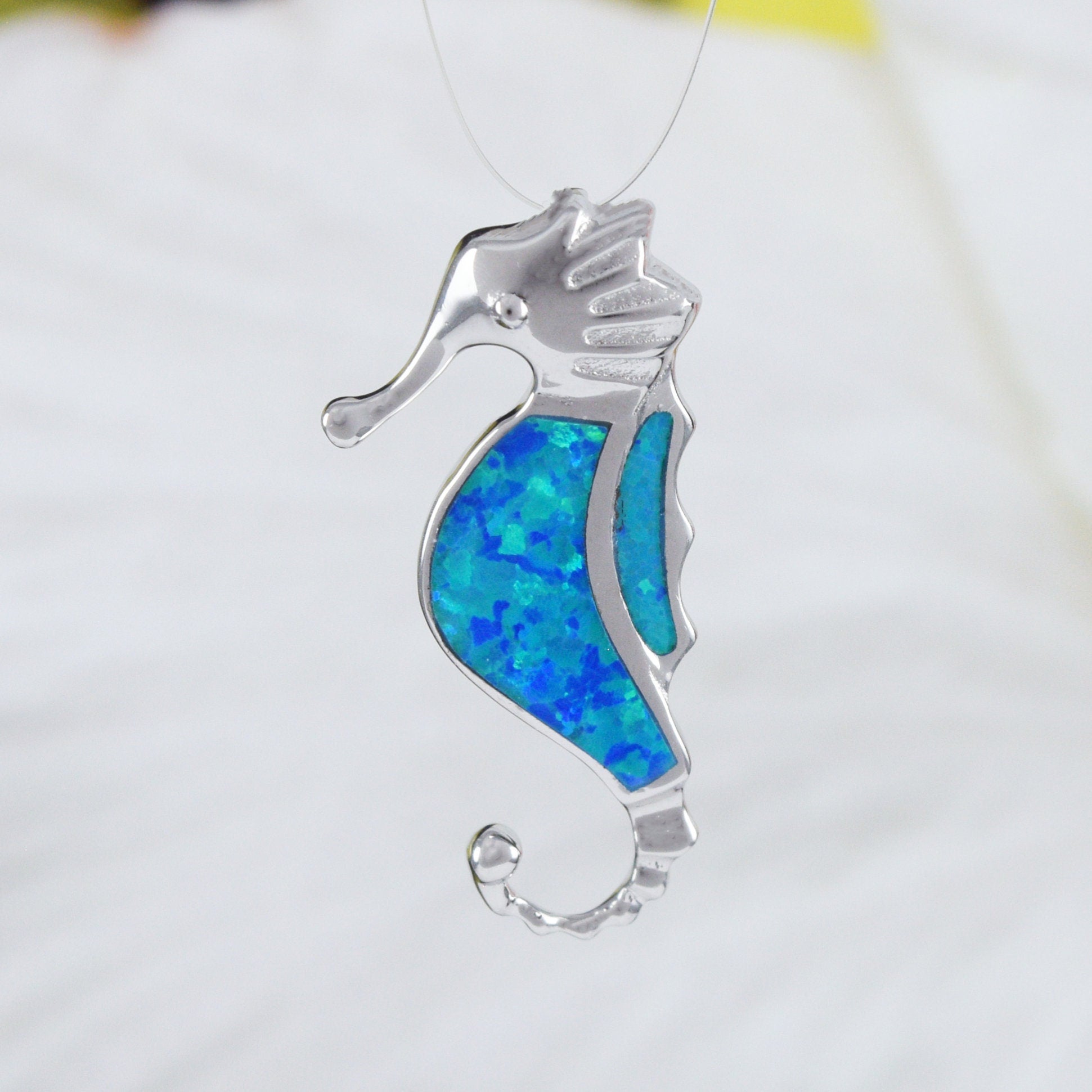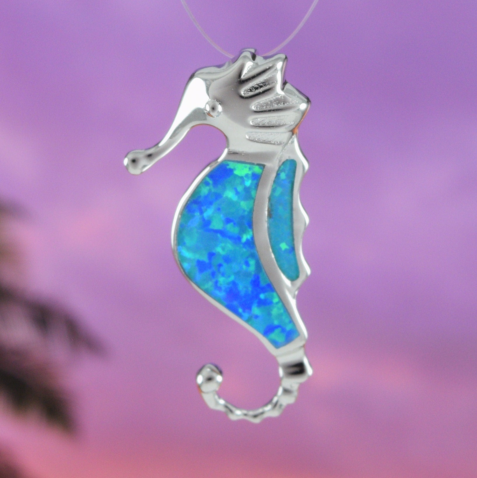 Hawaiian Blue Opal Seahorse Pendant, Sterling Silver Blue Opal Seahorse Pendant N6162 Birthday Mother Mom Gift, Island Jewelry