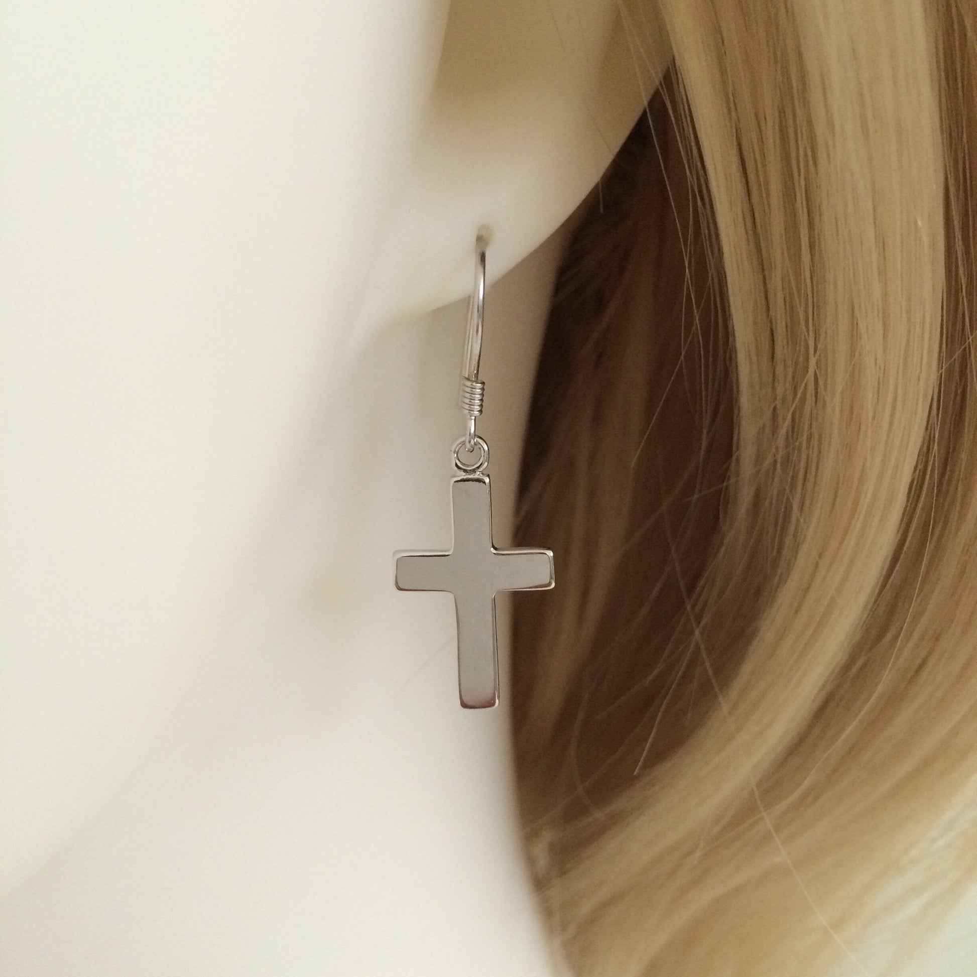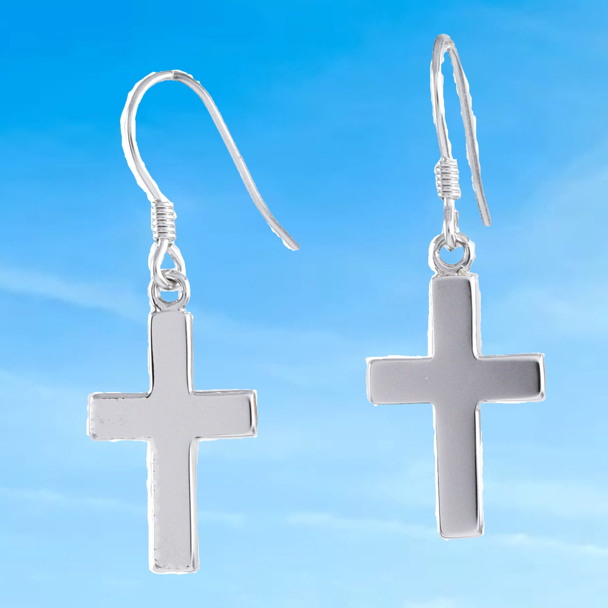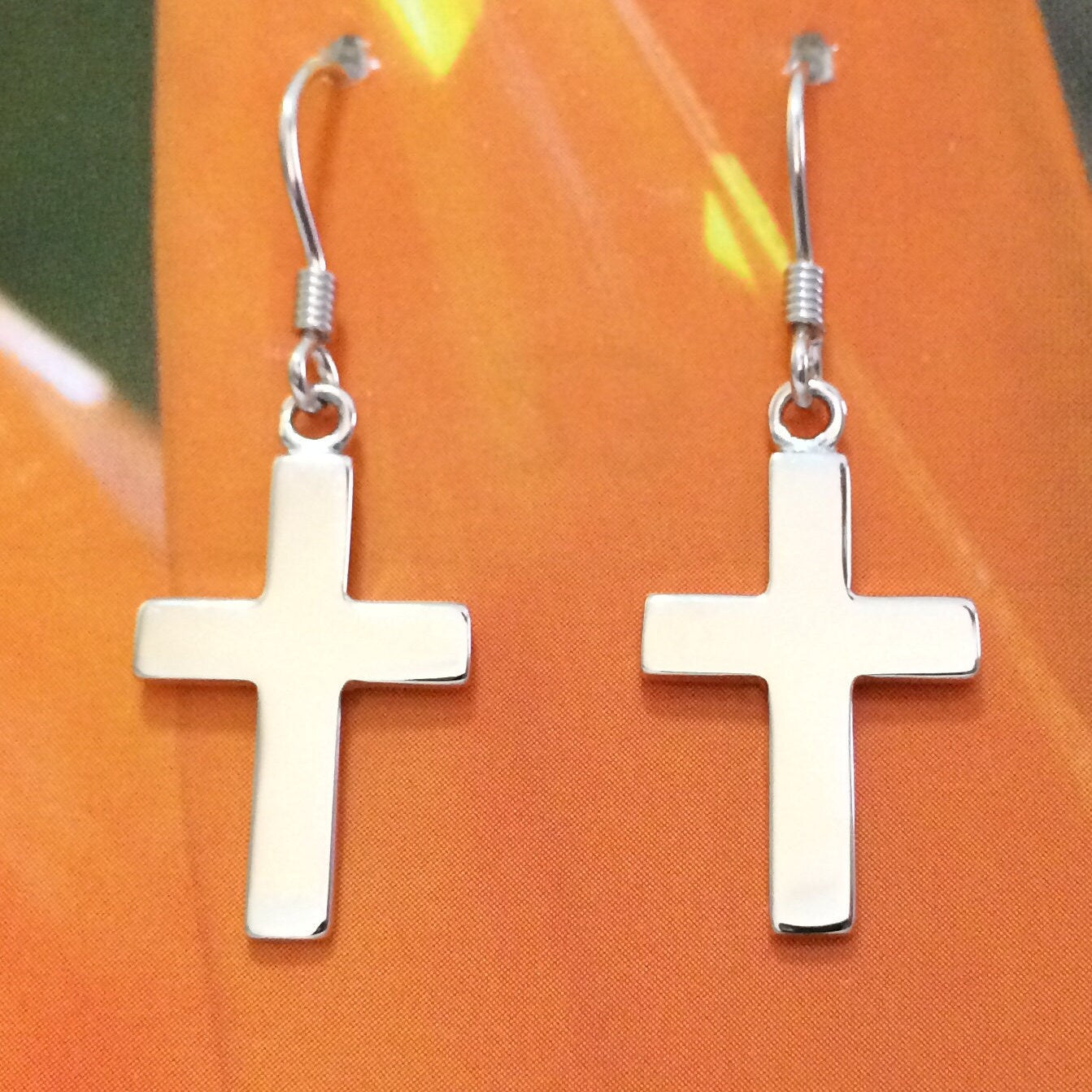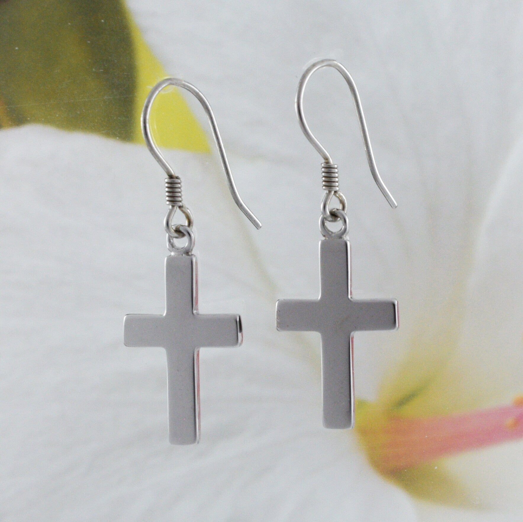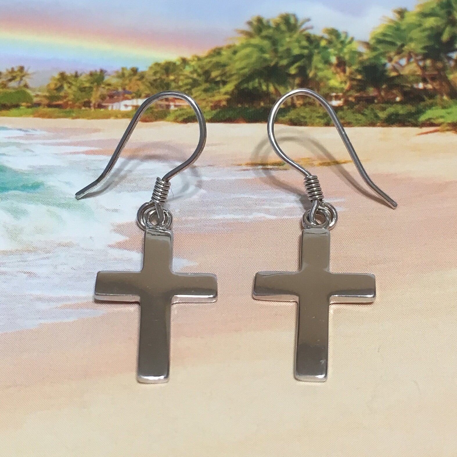 Hawaiian Large Cross Earrings, Sterling Silver High-Polished Cross Earrings, E4138A Christian Faith Jewelry, Mother Birthday Gift