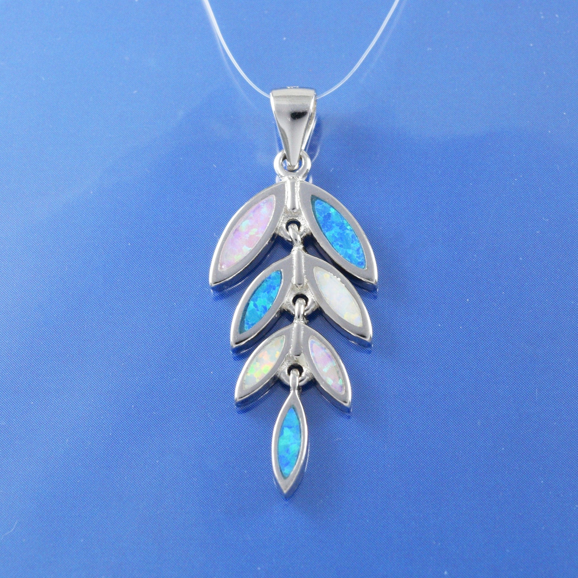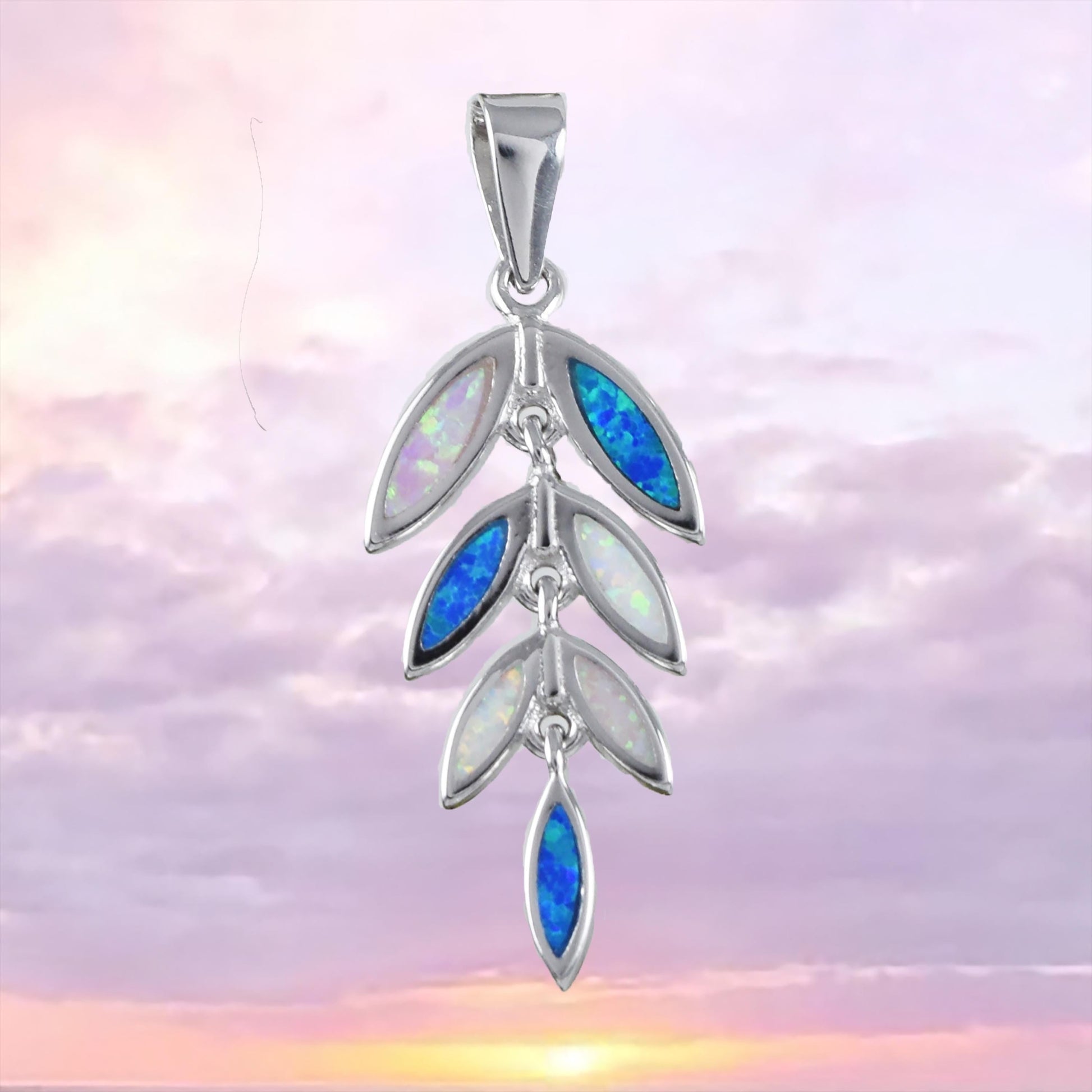 Hawaiian Tri-color Opal Maile Leaf Pendant, Sterling Silver Blue White Pink Opal Maile Leaf Pendant, N8838 Birthday Mom Gift