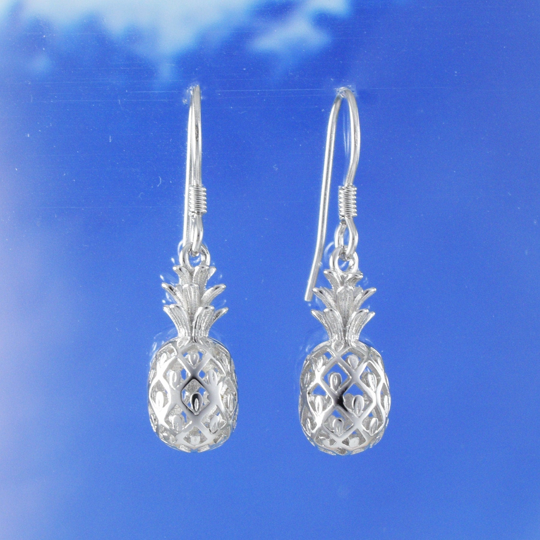 Hawaiian 3D Pineapple Earrings, Sterling Silver Pineapple Dangle Earrings, Hawaiian Jewelry, Christmas Anniversary Birthday Gift