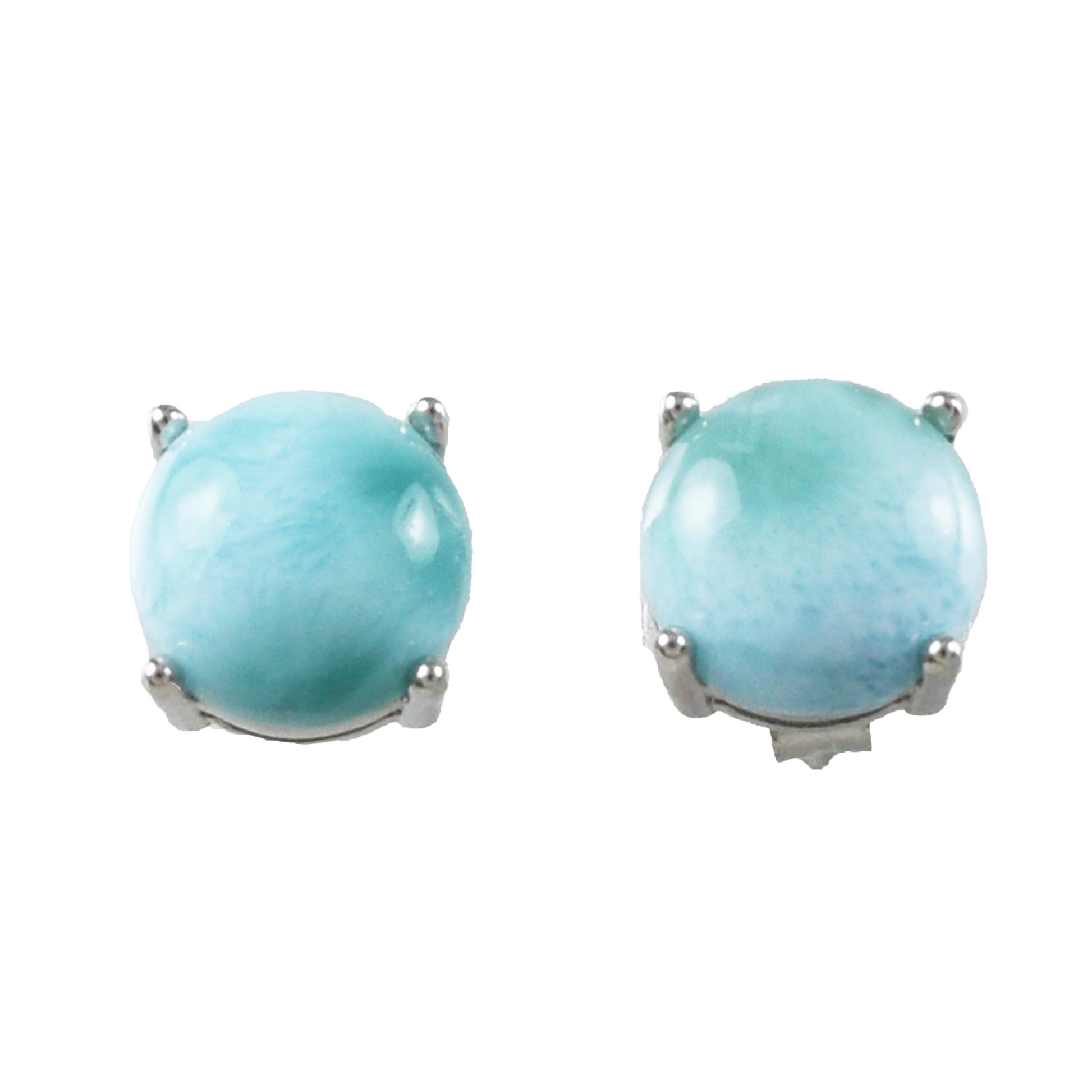 Sterling Silver Genuine Larimar Round Cut Stud Earrings