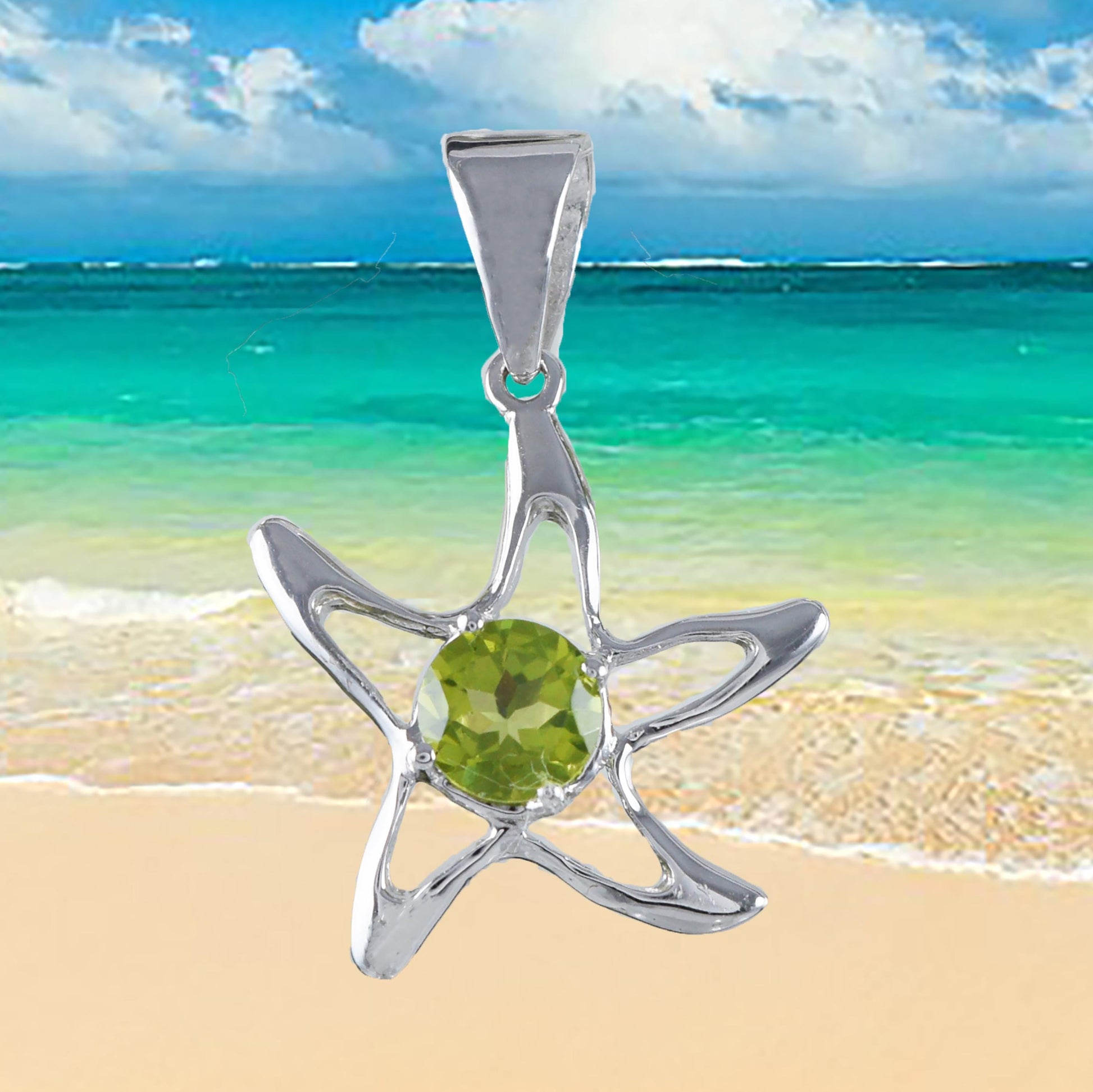 Hawaiian Genuine Peridot Starfish Pendant, Sterling Silver Green Peridot Starfish Pendant, Christmas Mom Birthday Gift