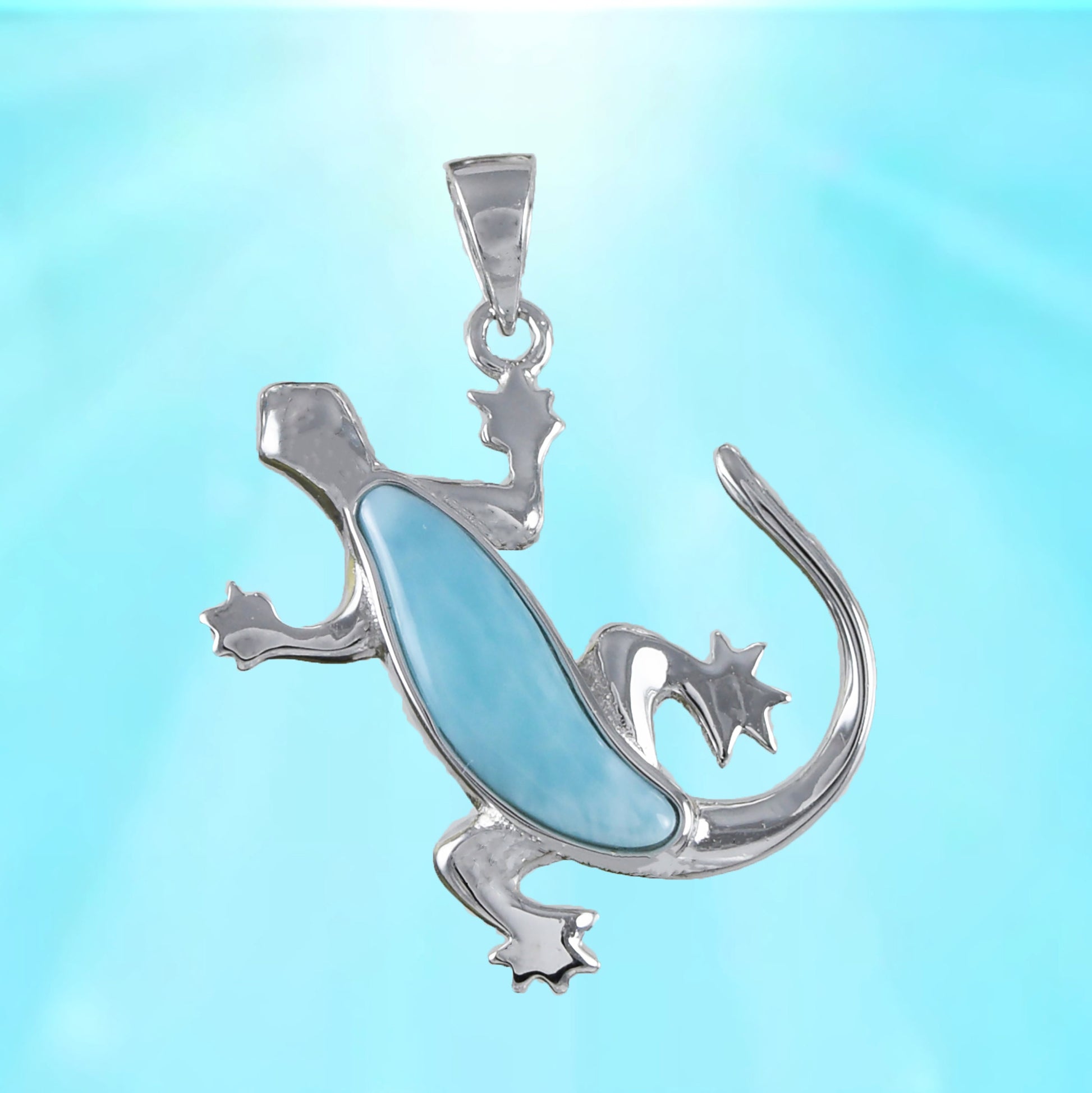 Sterling Silver Genuine Larimar Gecko Pendant