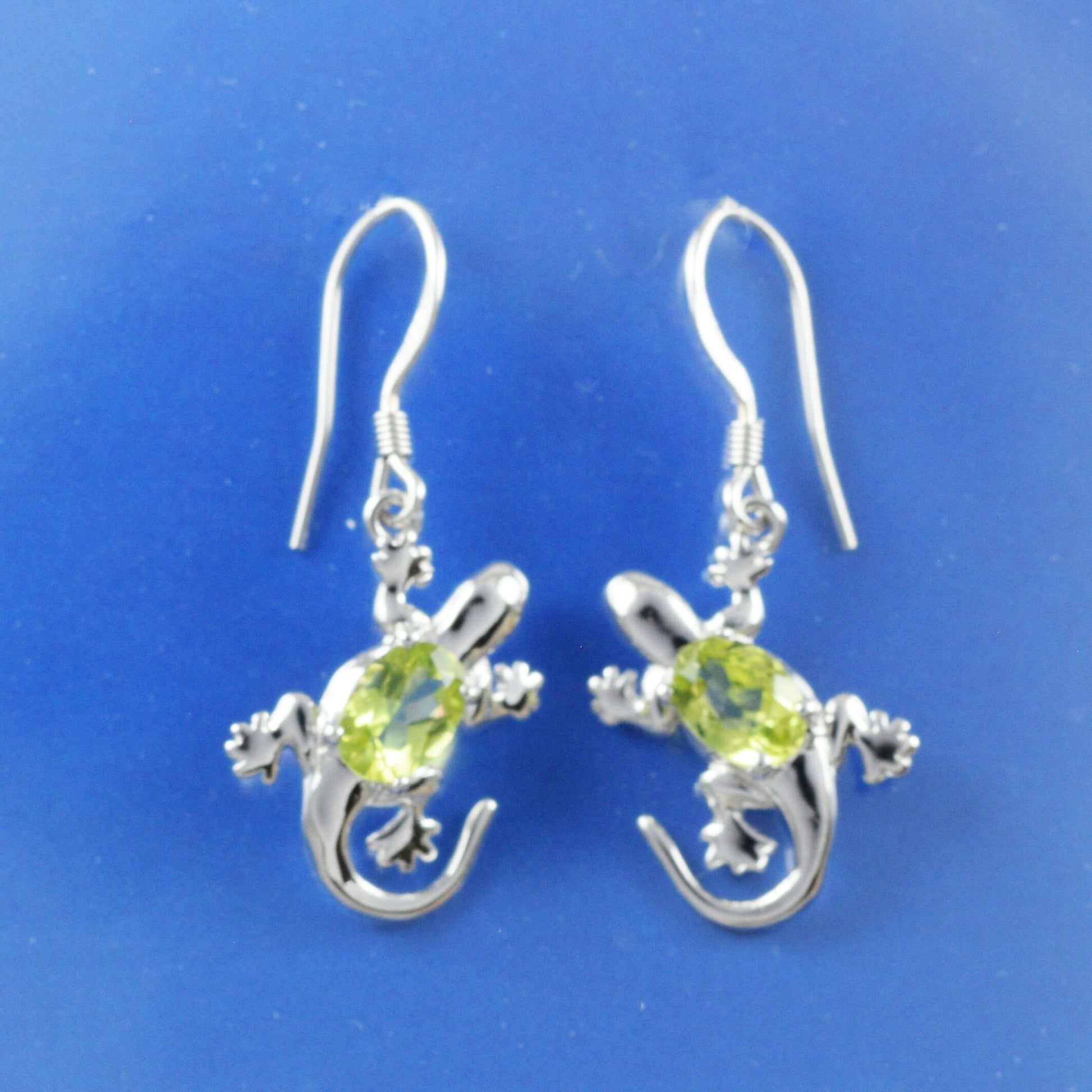Hawaiian Large Genuine Peridot Gecko Earrings, Sterling Silver Green Peridot Gecko Dangle Earrings, Christmas Mom Birthday Gift