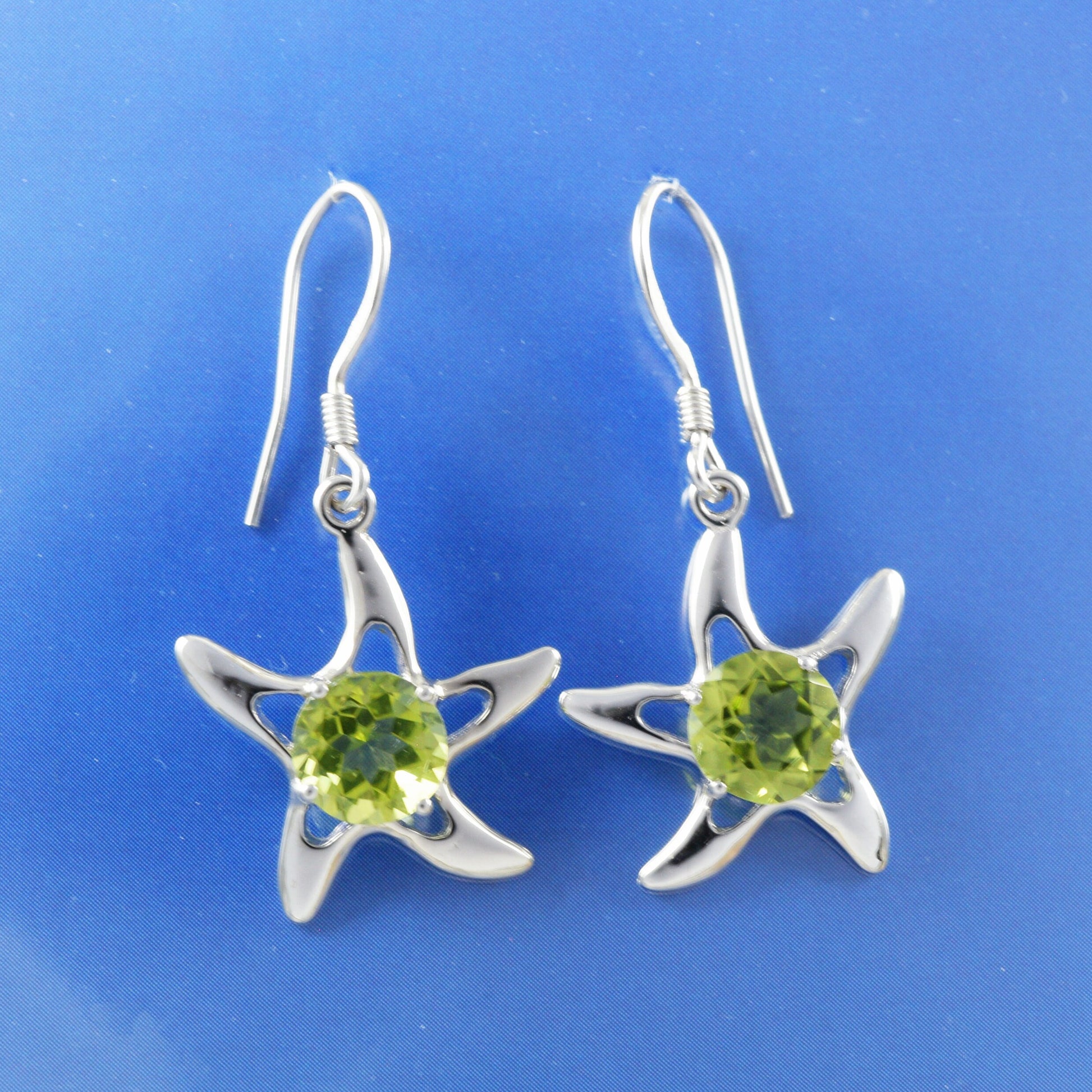 Hawaiian Large Genuine Peridot Starfish Earrings, Sterling Silver Green Peridot Star Fish Dangle Earrings, Christmas Mom Birthday Gift