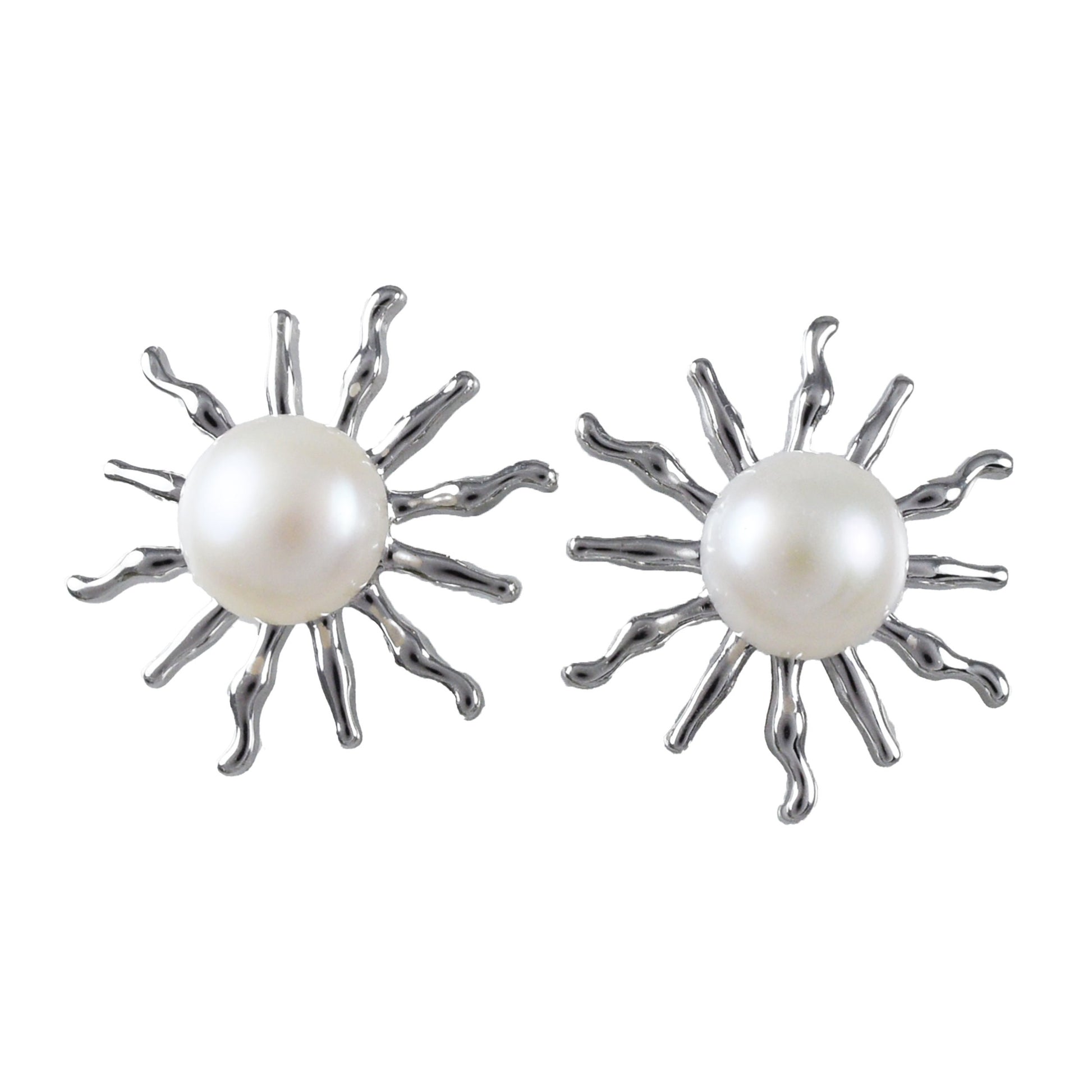 Hawaiian Large Genuine White Pearl Sun Earrings, Sterling Silver White Pearl Sun Stud Post Earrings, Hawaiian Birthday Mother Mom Gift