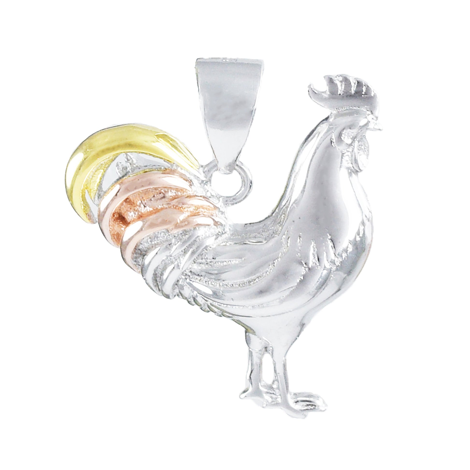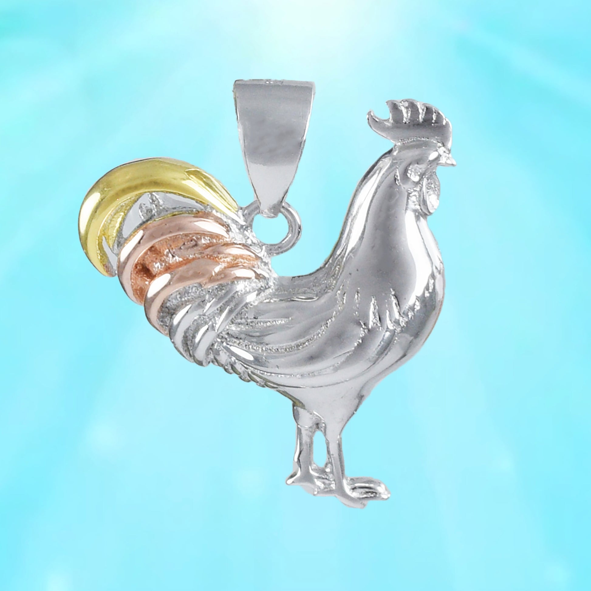 Hawaiian Tri-color Rooster Pendant, Sterling Silver 3-Tone Rooster Pendant, Christmas Anniversary Mom Birthday Gift