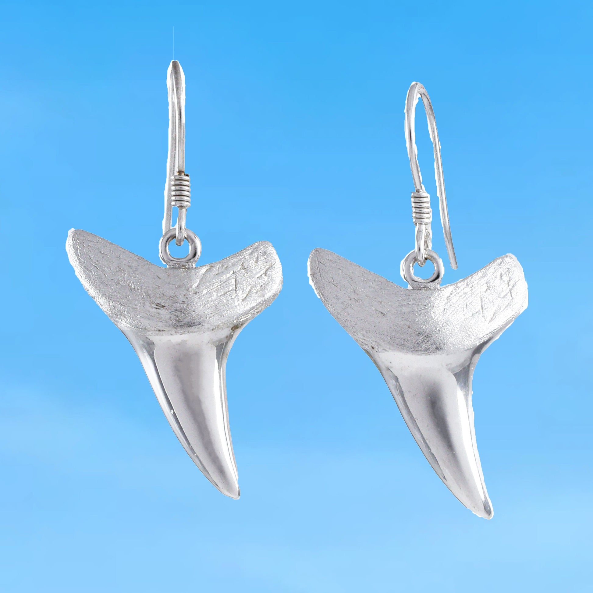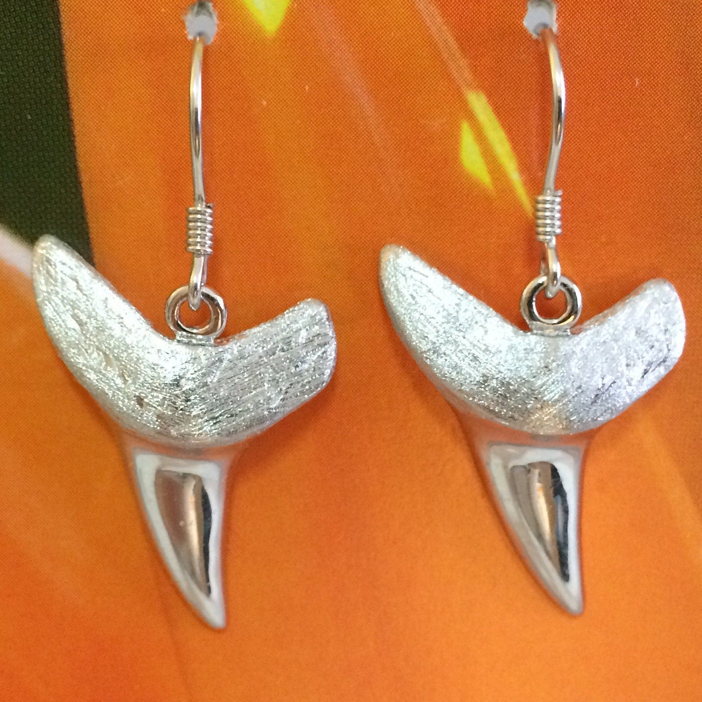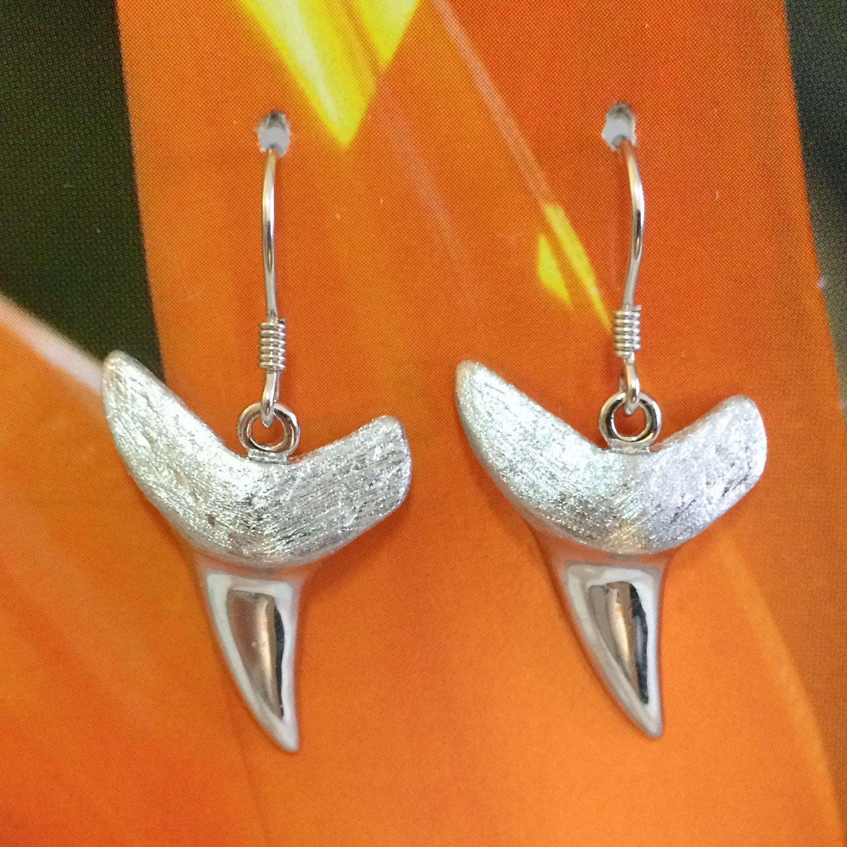 Hawaiian Large 3D Shark Teeth Earrings, Sterling Silver Shark Teeth Dangle Earrings, E4148A Mother Birthday Mom Gift