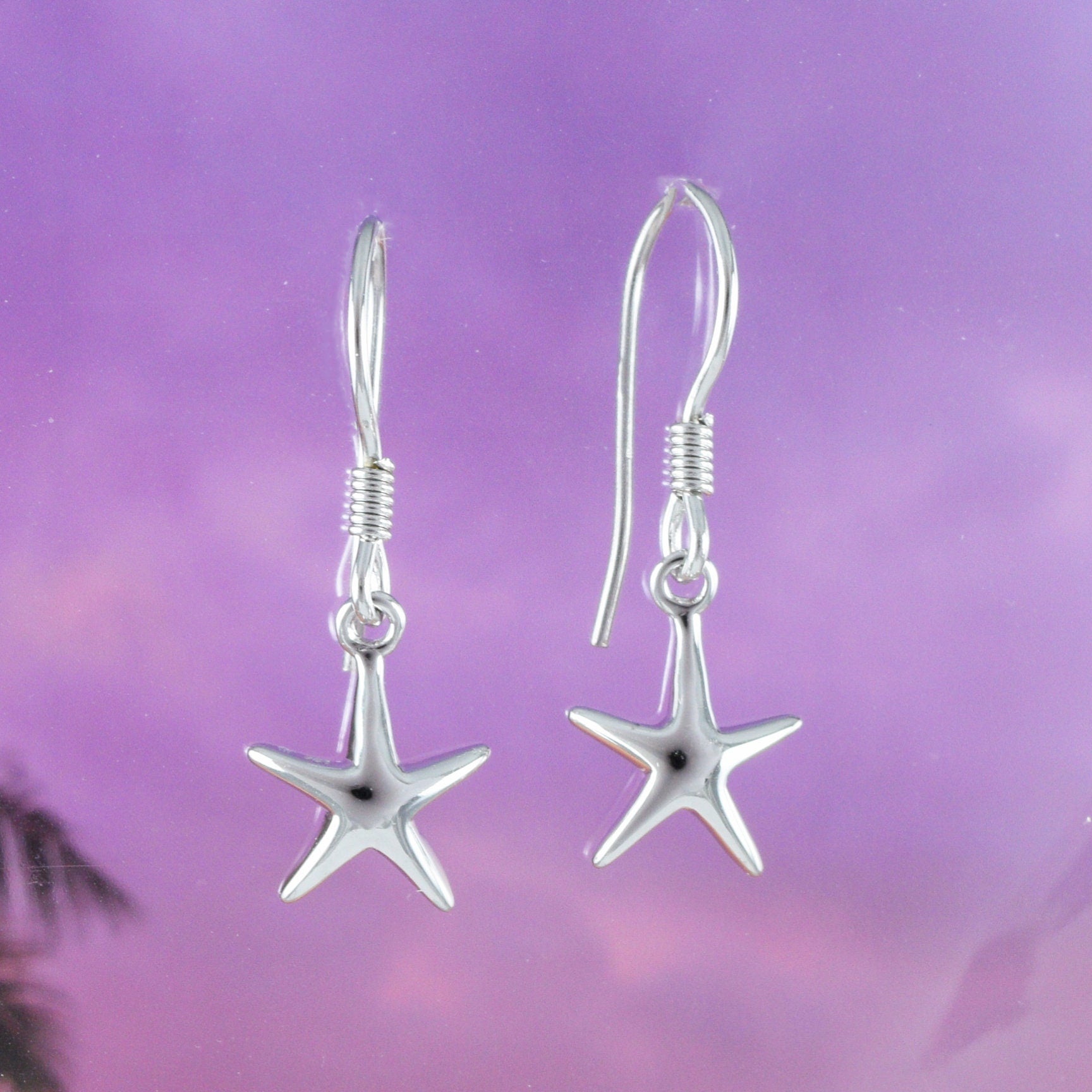 Hawaiian Starfish Earring, Sterling Silver Star Fish Dangle Earring, E4006 Birthday Wife Mom Girl Mother Gift