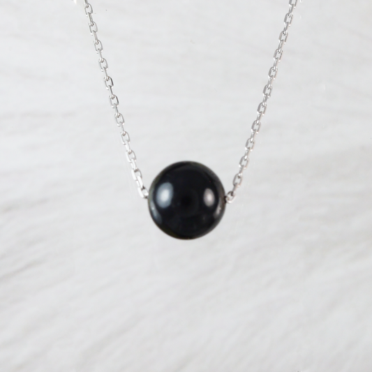 Genuine Black Coral Round Cut Necklace in Adjustable Sterling Silver Chain, N9505 - Paradise Treasures Jewelry