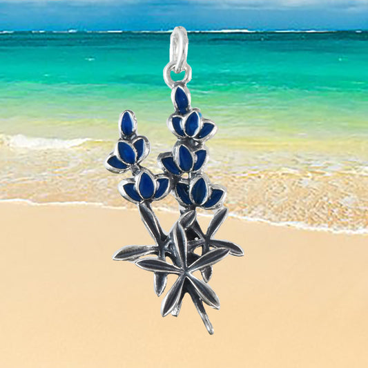 Texan Bluebonnet Pendant, State Flower of Texas, Sterling Silver Blue Bonnet Charm Pendant, N9449 Birthday Mother Wife Mom Gift