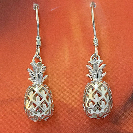 Hawaiian 3D Pineapple Earrings, Sterling Silver Pineapple Dangle Earrings, Hawaiian Jewelry, Christmas Anniversary Birthday Gift