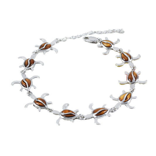 Adjustable Hawaiian Large Genuine Koa Wood Sea Turtle Bracelet or Anklet, Sterling Silver Sea Turtle Bracelet, Christmas Birthday Mom Gift