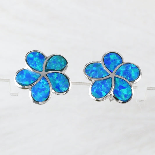 Beautiful Hawaiian Blue Opal Plumeria Earrings, Sterling Silver Blue Opal Plumeria Stud Earrings, E4031 Birthday Mom Mother Gift