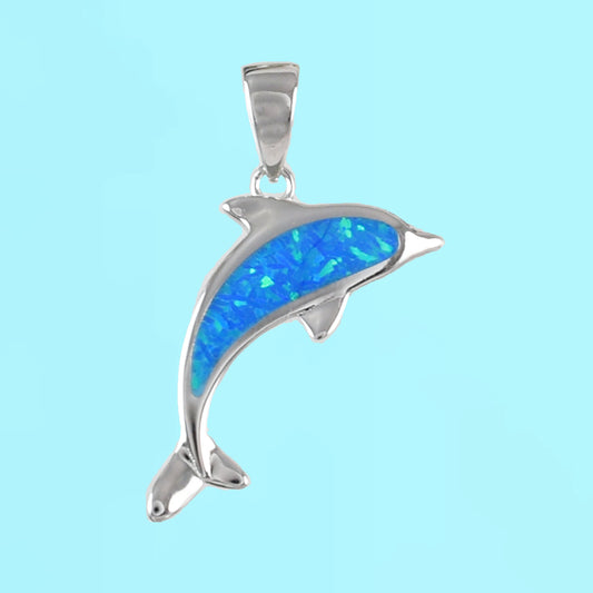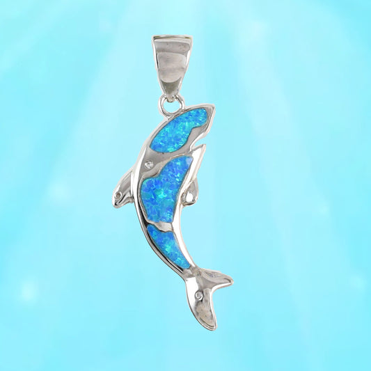Hawaiian Blue Opal Dolphin Pendant, Sterling Silver Blue Opal Inlay Dolphin Pendant, Christmas Present, Birthday Gift