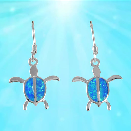 Hawaiian Blue Opal Sea Turtle Earrings, Sterling Silver Blue Opal Sea Turtle Dangle Earrings, Christmas Present Birthday Gift
