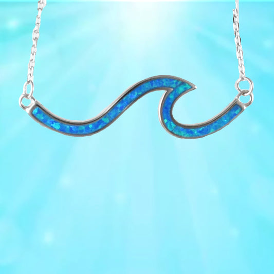 Hawaiian Blue Opal Ocean Wave Necklace, Sterling Silver Blue Opal Wave Necklace, Christmas Anniversary Birthday Mom Gift